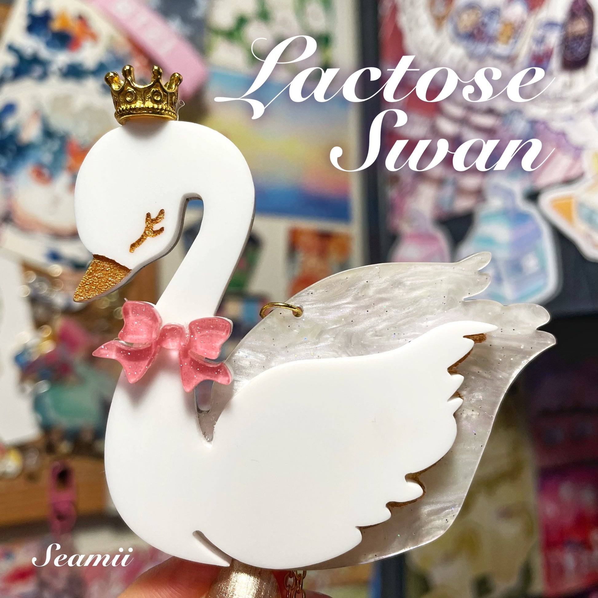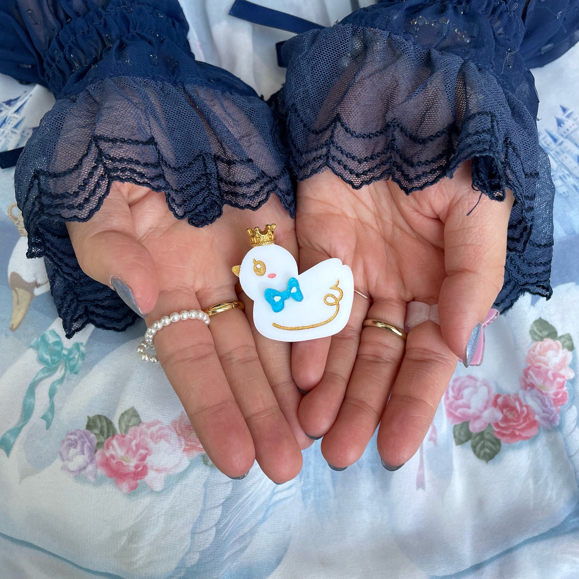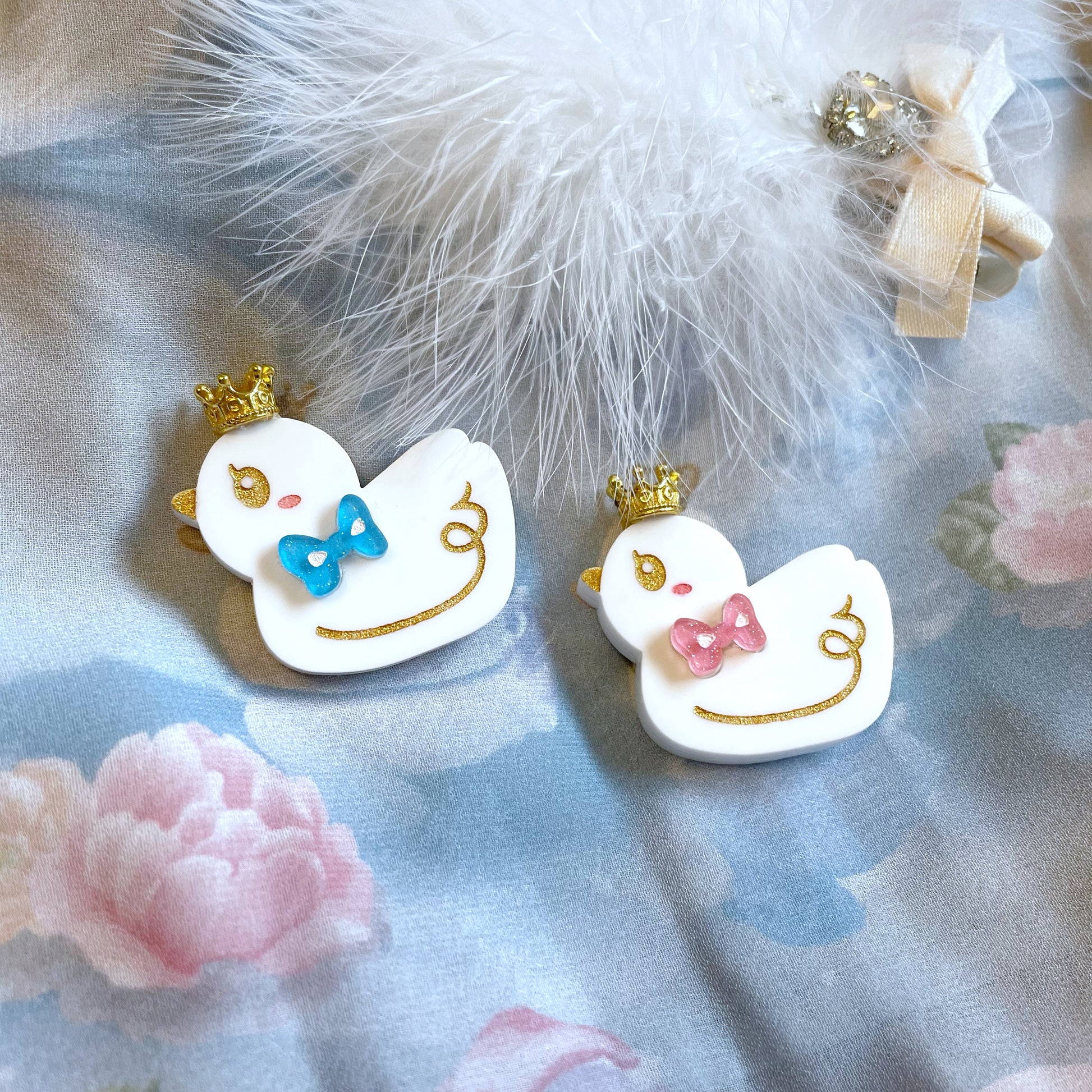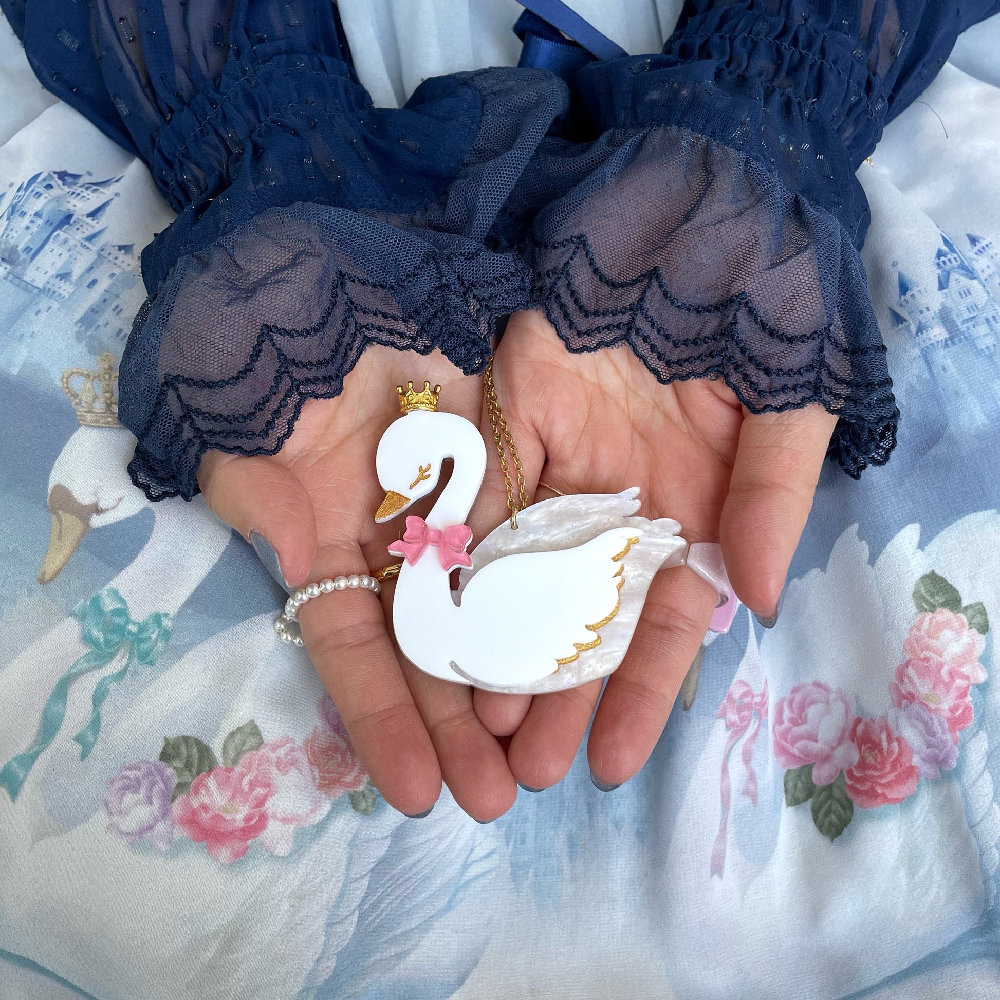 Acrylic cut Swan necklace and Cygnet pin, available with blue ribbon/pink ribbon