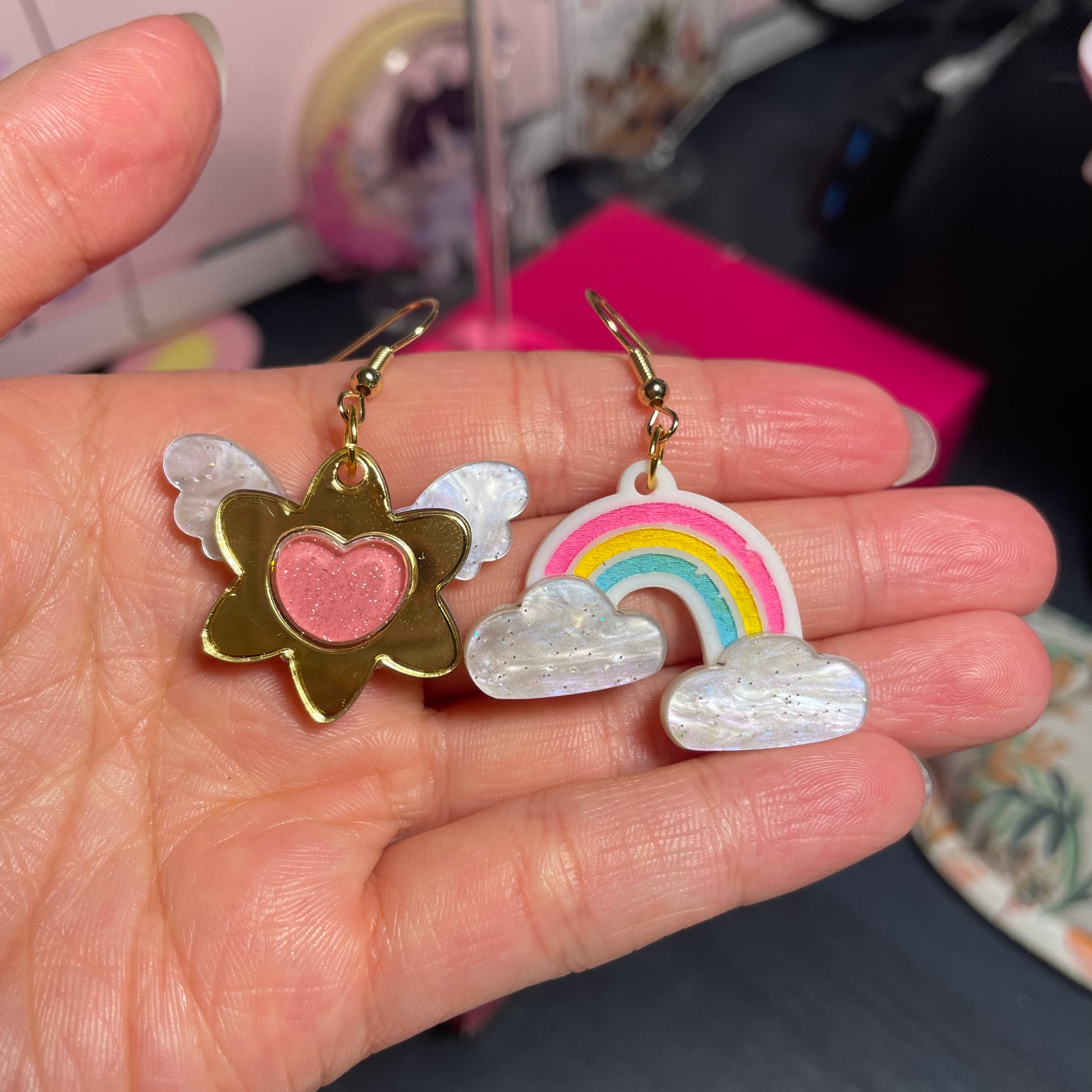 Each earring is painted, assembled, glued, polished by myself!